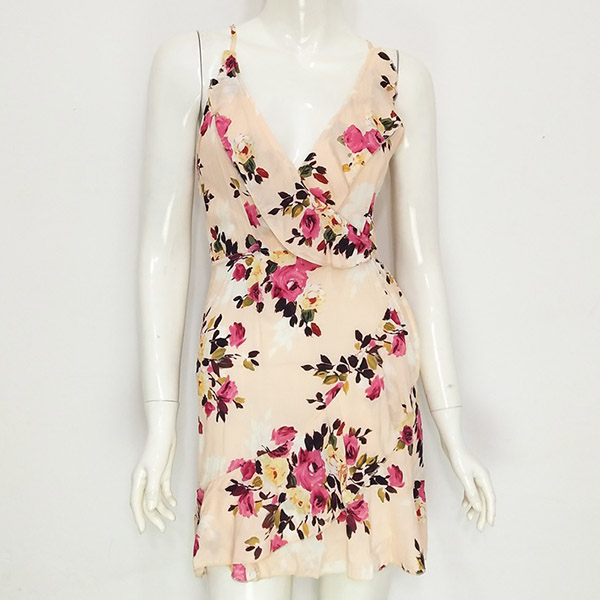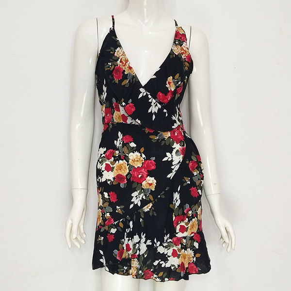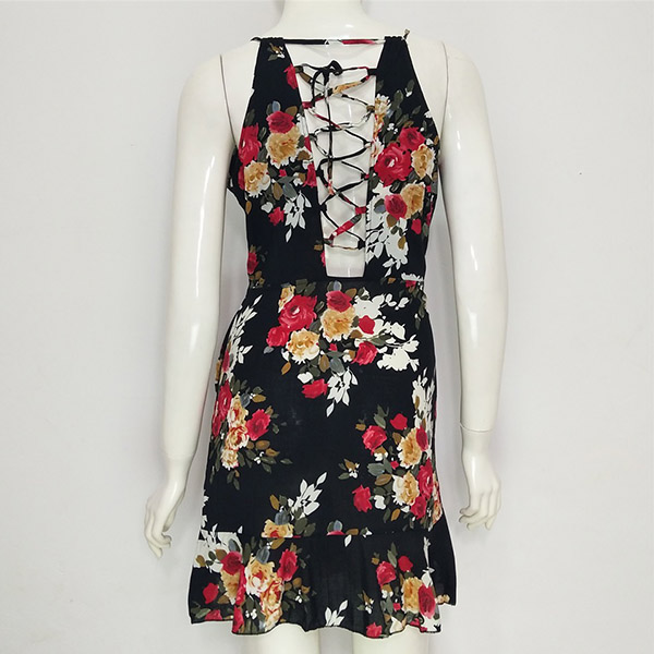 Sling style,boasts vibrant floral print,the backless,v-neck and lace-up design at back side make this