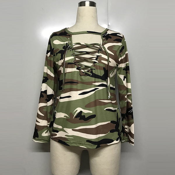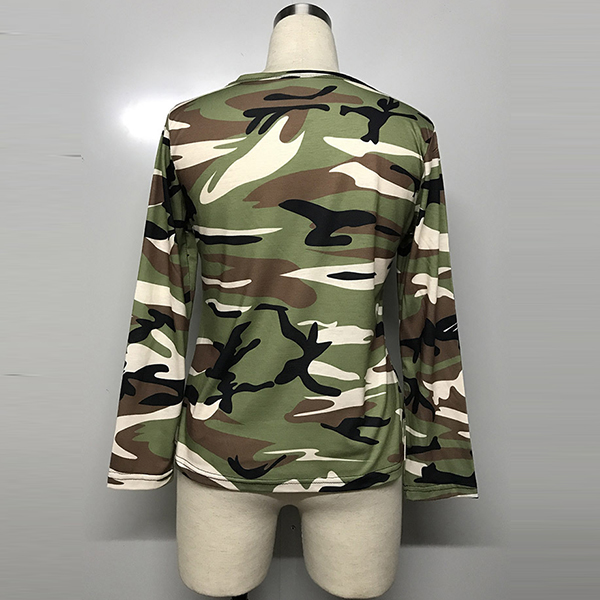 Even on your casual days,you can have a cozy yet sexy style with this t-shirt! Camouflage printed design makes it look
