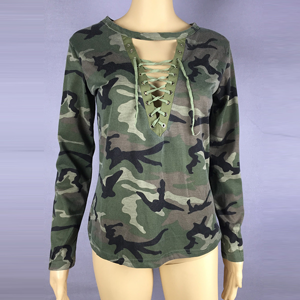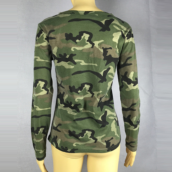 We have a cool way to give you a cozy yet feminine style,that is through this t-shirt! Camouflage printed style,designed with