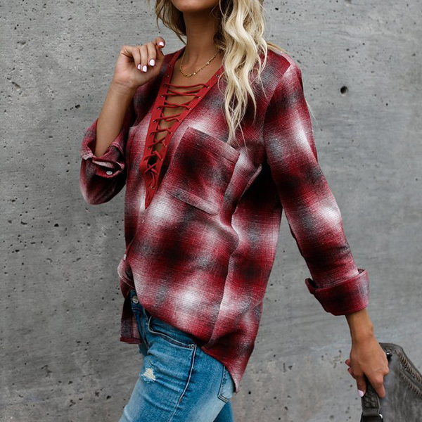 you a comfortable day. The design highlight? The lace-up deep v-neck design makes this piece look so sexy and charming.