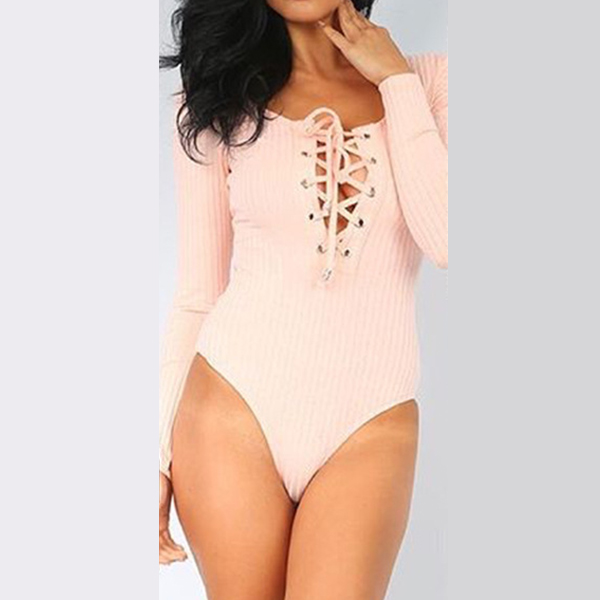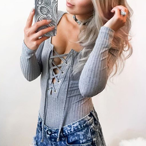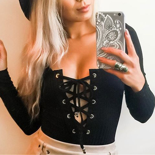 the lace-up deep v-neck design makes this piece look so sexy and seductive. Designed with long sleeve and
