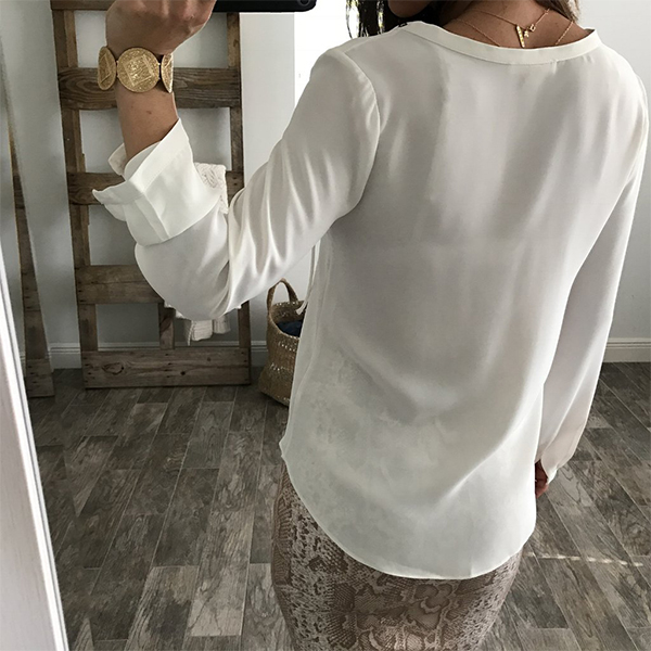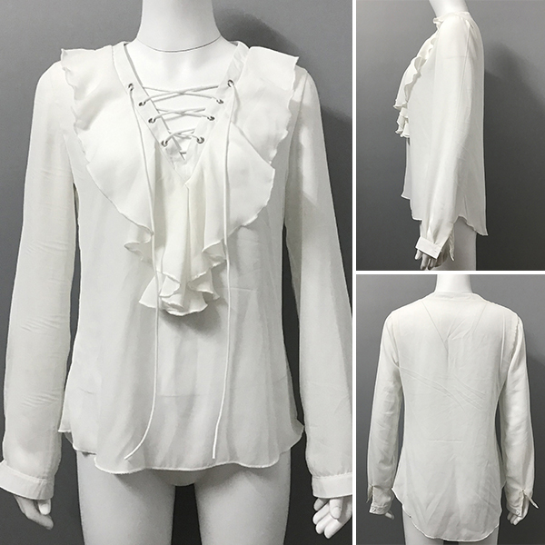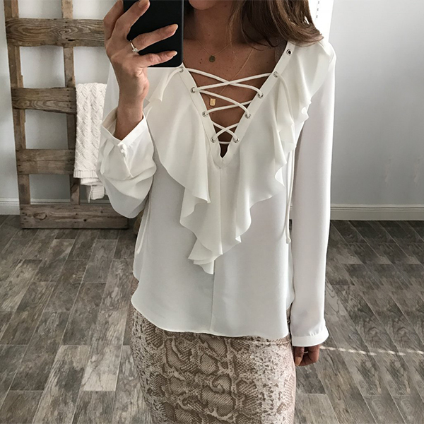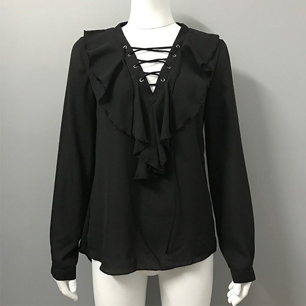 Be an elegant office lady on your work days with this long sleeve chiffon blouse. Solid color style,its lace-up deep v-neck and