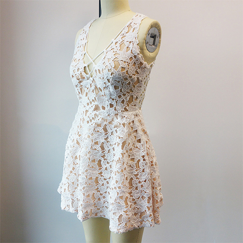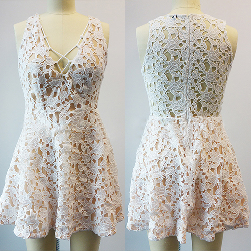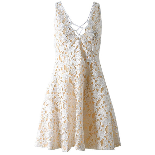 Hollow out lace style,its deep v-neck with lace-up design,this sleeveless lace dress can give you