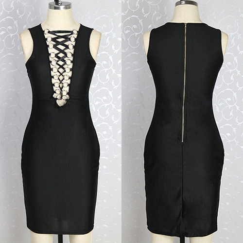 Give your wardrobe a sunny update with this Bodycon dress. It features a lace-up deep v-neck design,