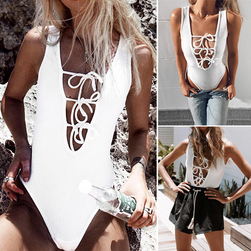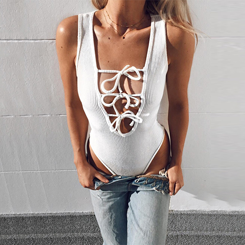 Show off your figure by slipping into this feminine bodysuit. Solid color style,its lace-up deep v-neck design makes this