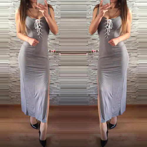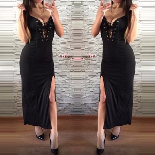 Solid color style,its lace-up deep v-neckline and slit hem design makes this dress look sexy and