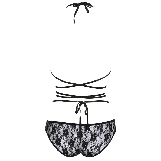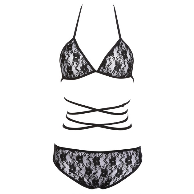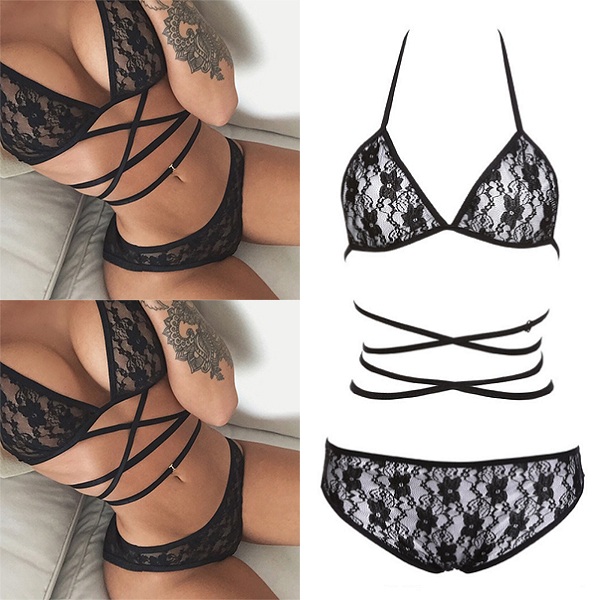 See-through lace style,with lace-up design,this sexy lingerie set is a perfect way to show off