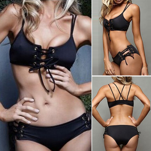of it is styled with lace-up designs at both sides. What's more, the bikini top is also equipped with a