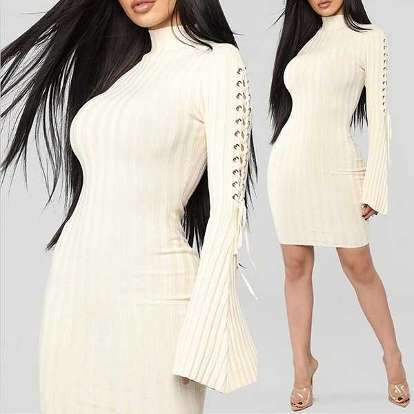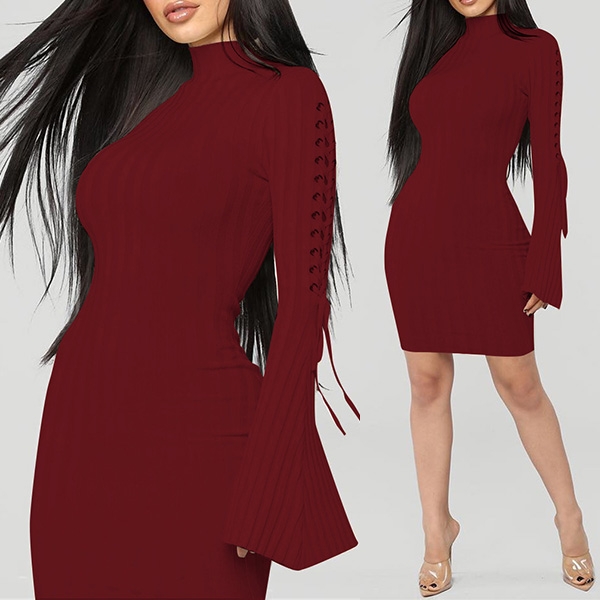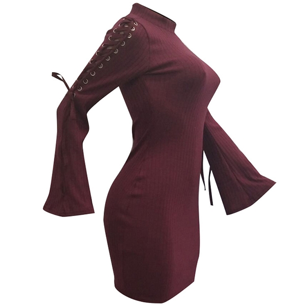 It comes with a solid color,the mock neck,lace-up details and trumpet sleeve design make it look so