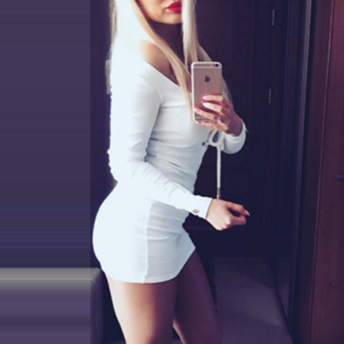 Solid color style,outfitted with long sleeve,lace-up v-neck and a bodycon dress,this simple yet sexy dress will
