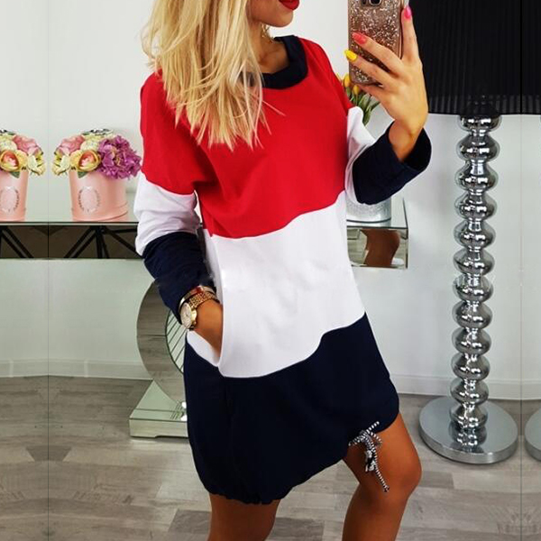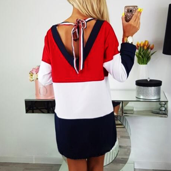 longer be a problem if you invite this dress to your wardrobe ensemble. Contrast color style,the design highlights like v-shaped