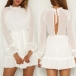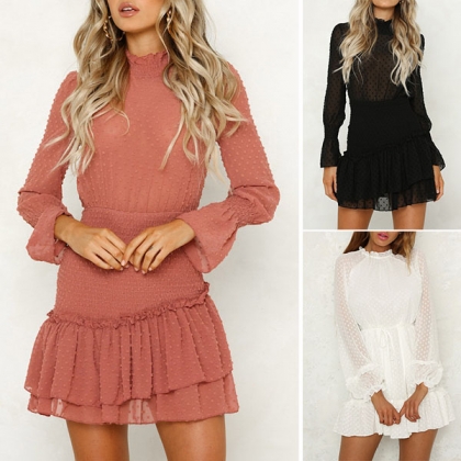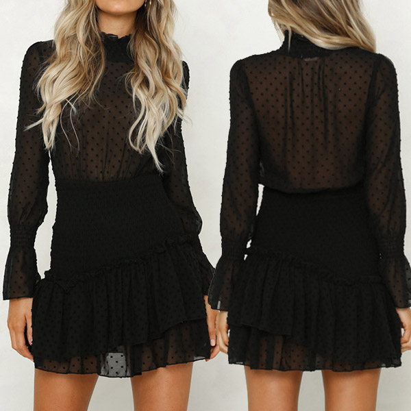 See-through design makes it look so sexy and alluring,while the lantern sleeve,stand collar and ruffle