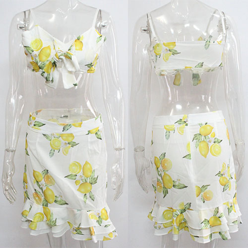 Take an interest with this two-piece set to give your summer wardrobe an update. Its lemon pattern makes