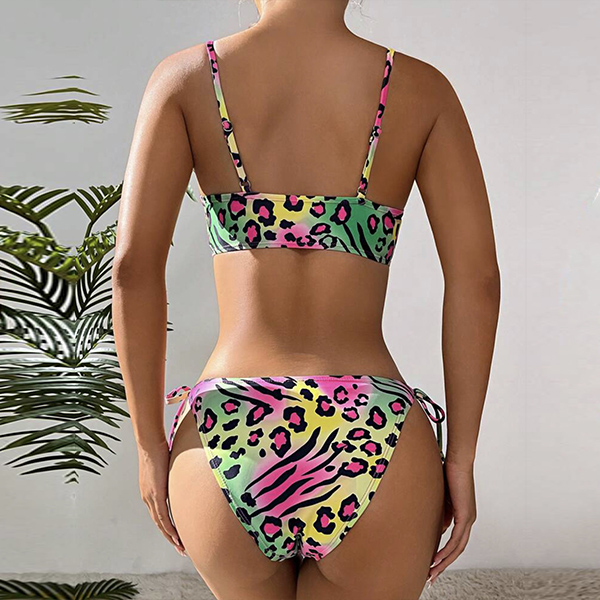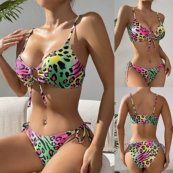 Leopard printed style,including a halter bra and a flouncing triangle briefs,this bikini set is just the thing what you need for your beach days or tropical getaways.