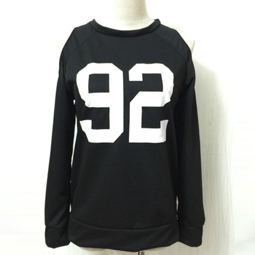 shoulder. Letters and numeric printed style, paired with round neck and long sleeve design, this piece blends