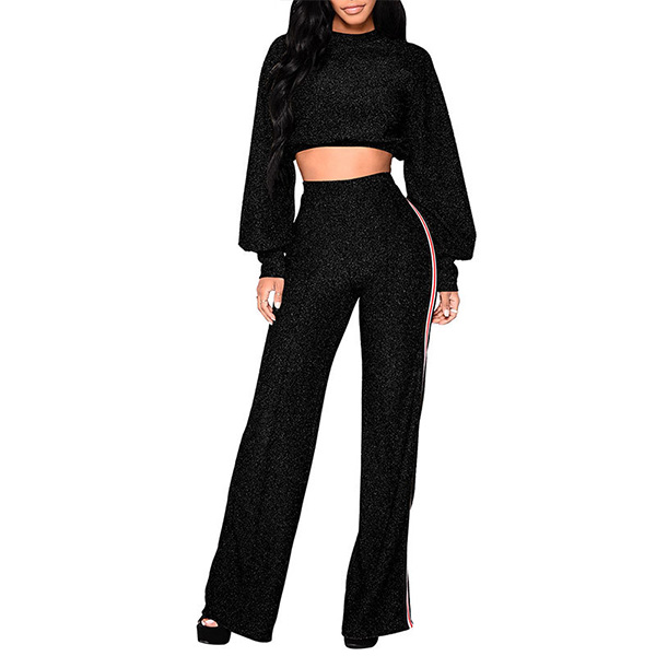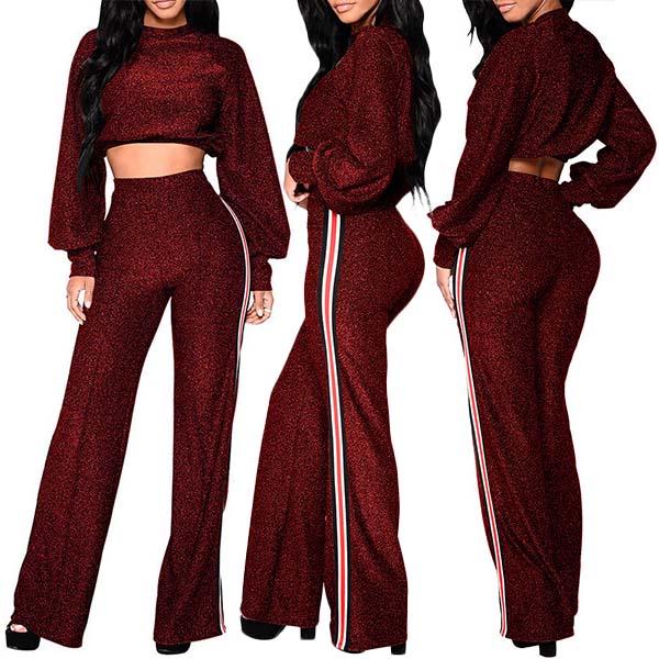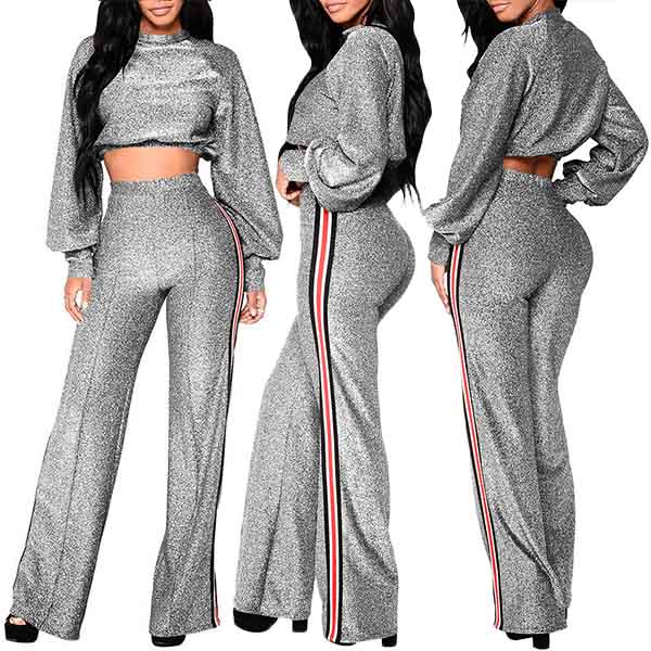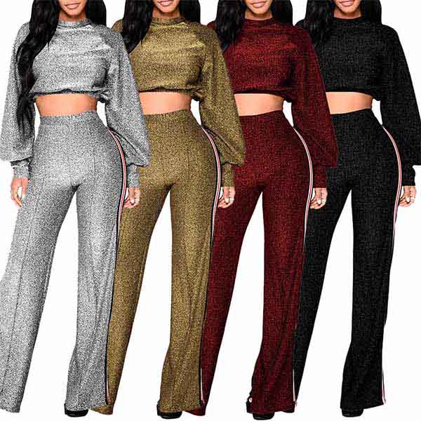 Including a long sleeve crop top and a high waist pants,this two-piece set can showcase your charming