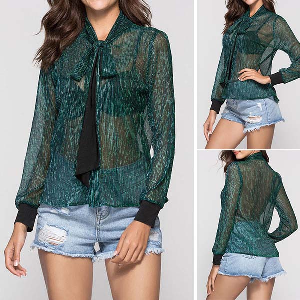 It is a good way to exude your feminine appeal through this long sleeve blouse. See-through style design