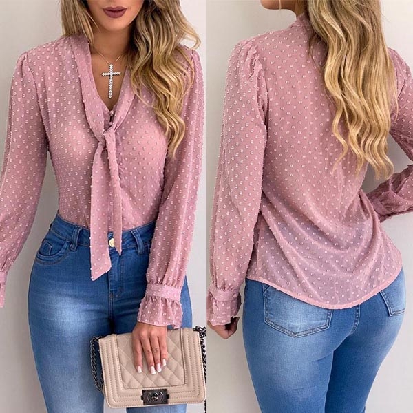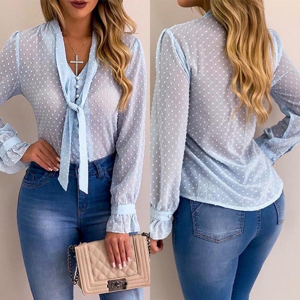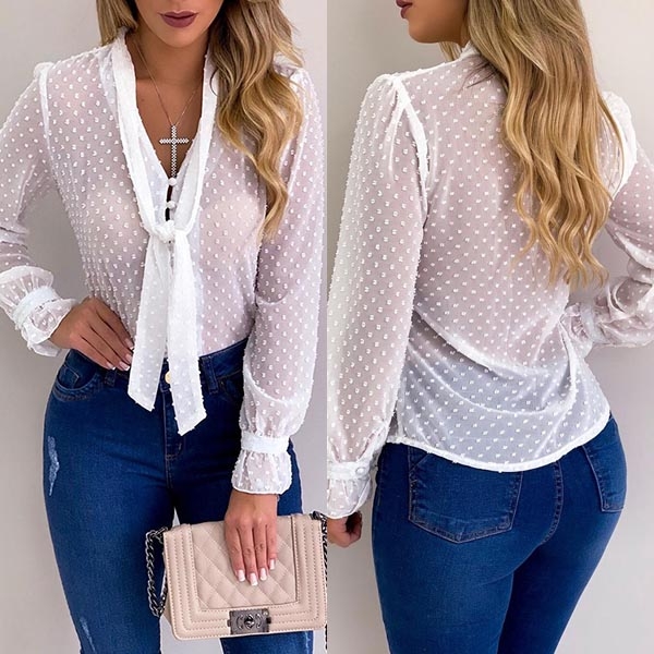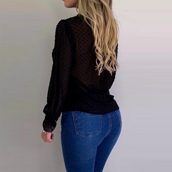Exude your sexy and feminine side through this long sleeve blouse. See-through style,