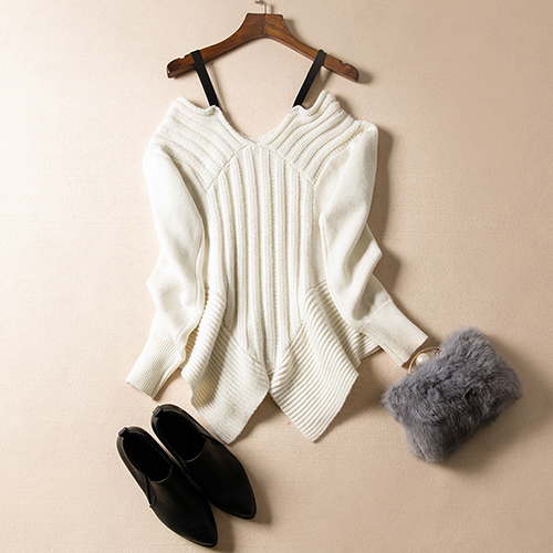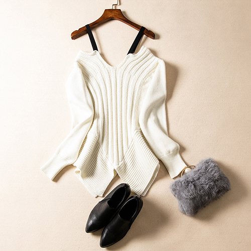 Perfectly showcase your femininity and sexy and sweet look via this sling knit sweater. Off shoulder