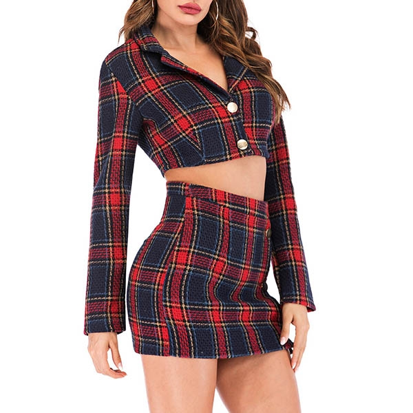 You can easily upgrade your style with this two-piece set. Plaid element design makes it more in line with