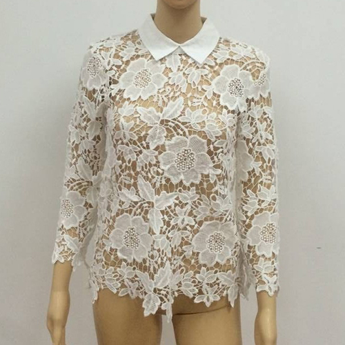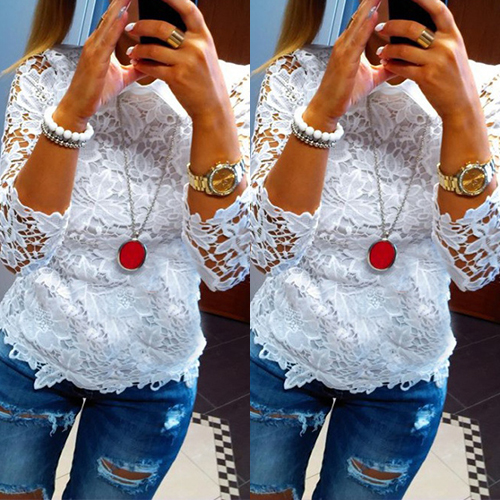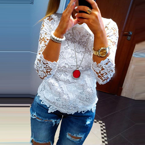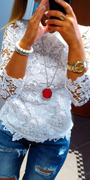 Fall in love with this t-shirt at your first sight? Then add it to your closet! Hollow out lace crochet style,