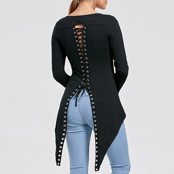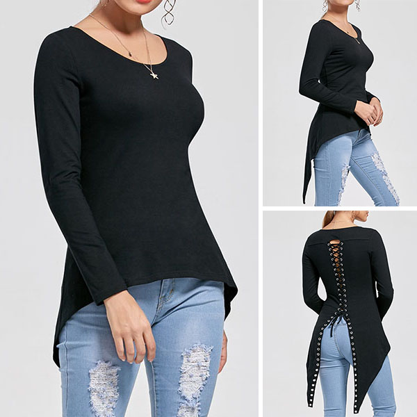 and cozy fabric,this t-shirt can promise you a long-lasting comfort. On the other hand,its back-slit and lace-up design at