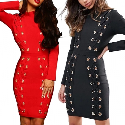 round neck and a tight silhouette,this dress can highlight your seductive curve. Moreover,the lace-up