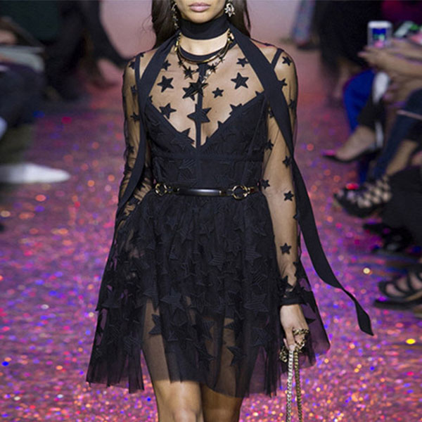 See-through style,with long sleeve and round neck design,this dress of course can showcase your alluring