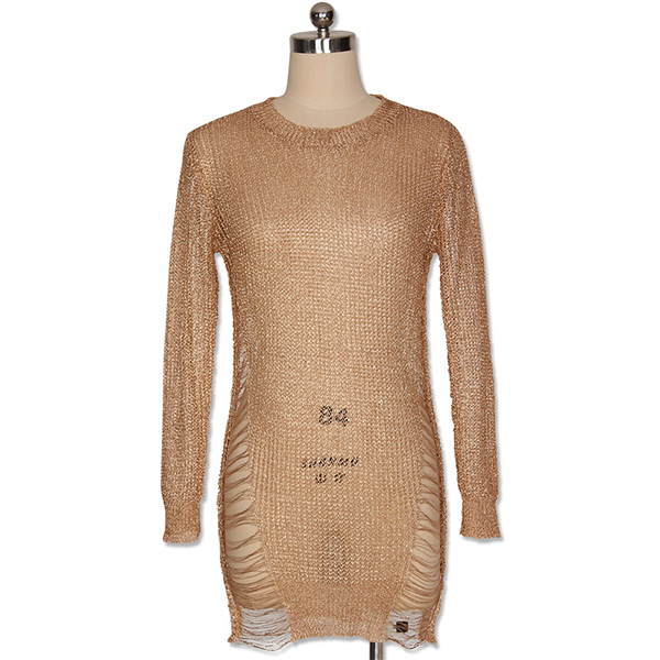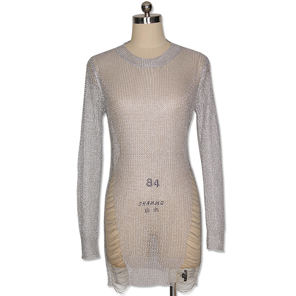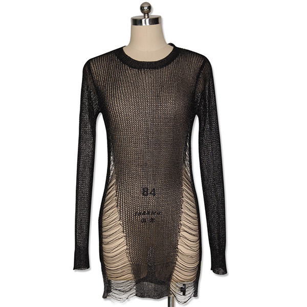 Hollow out knit style,styled with long sleeve,round neck and ripped hem,chic and unique. No matter match with your