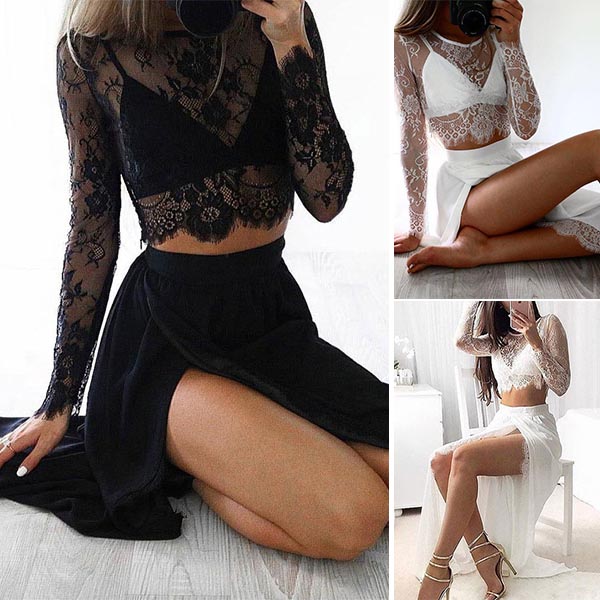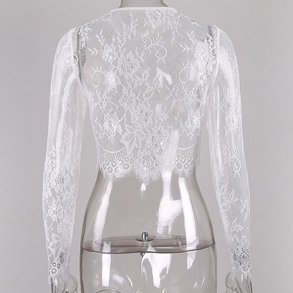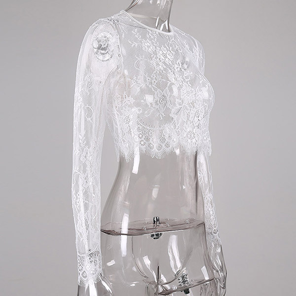 When you choose this lace crop top,you can easily win more eyes. See-through style,with long sleeve