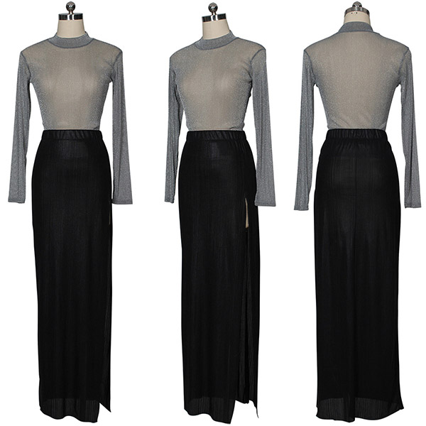a long sleeve see-through top and a high waist side-slit hem skirt,this two-piece set knows how to give