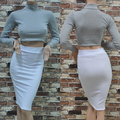 Including a long sleeve turtleneck tops and a high waist bust skirt,this two-piece set is a perfect way to show off