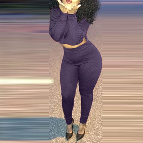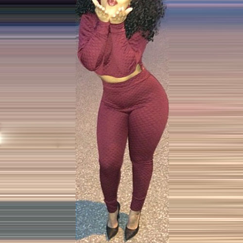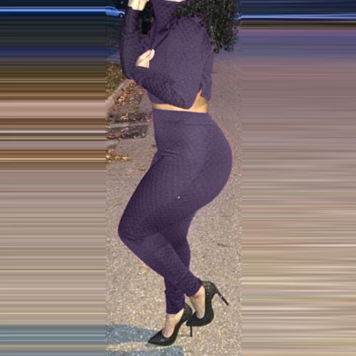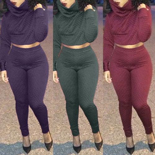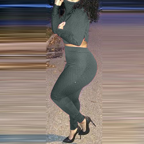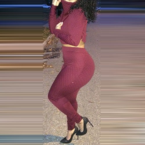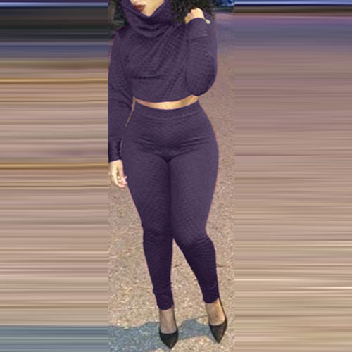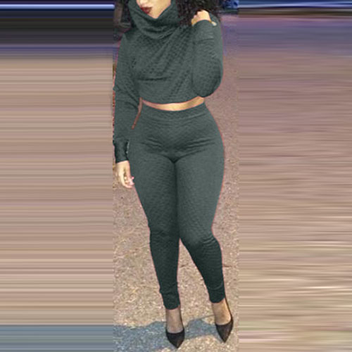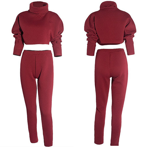 Solid color style,including a long sleeve turtleneck crop tops and a high waist pants,this two-piece set
