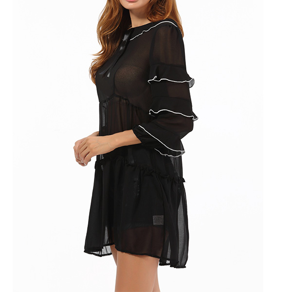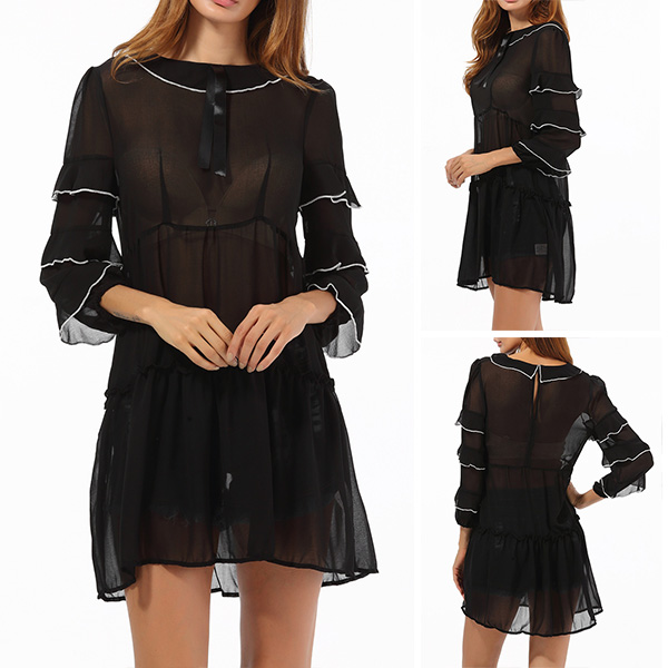 When you throw yourself into this dress,you can easily arouse more attention. See-through chiffon design gives you a