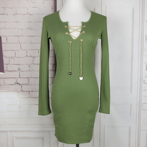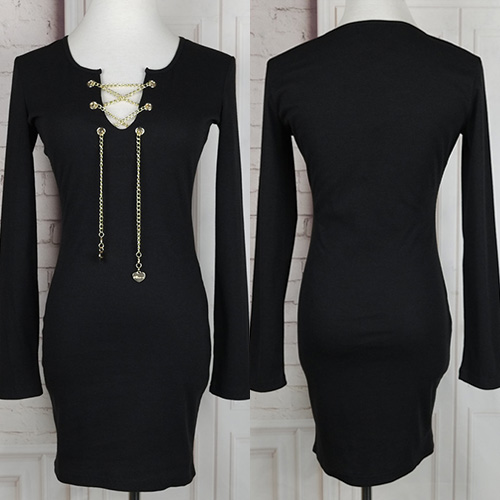 is a perfect way to show off your slender figure. On the other hand,its low-cut v-neck with chain