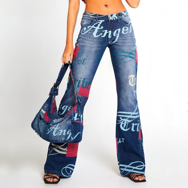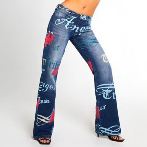 Sexy Low-waist Printed Ripped Skinny Jeans