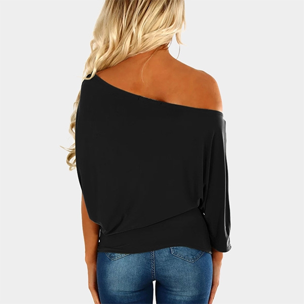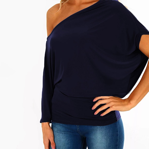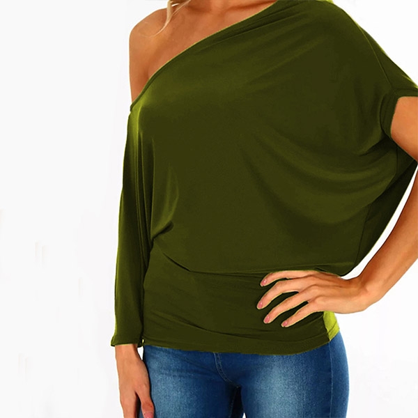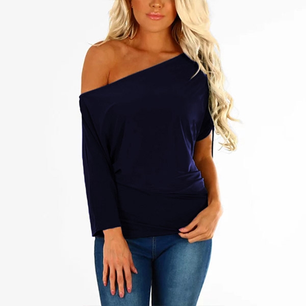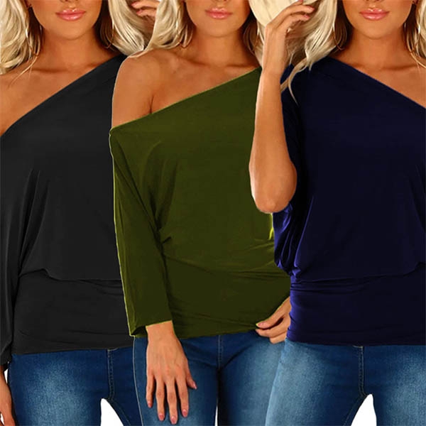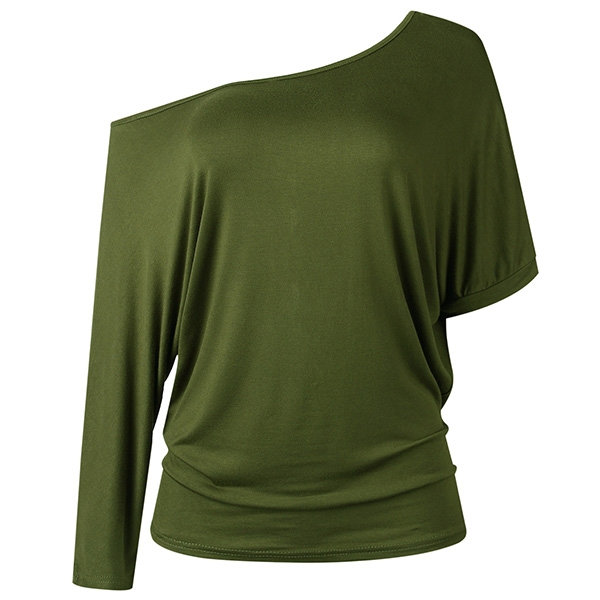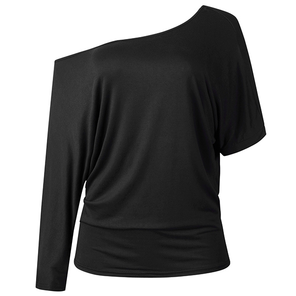 It comes with a solid color,the oblique shoulder and asymmetric sleeve design are the highlights.