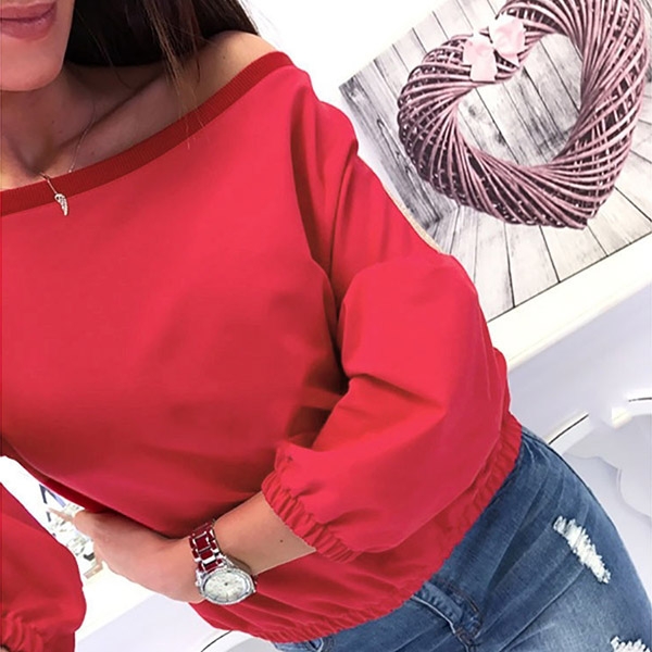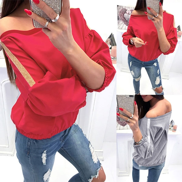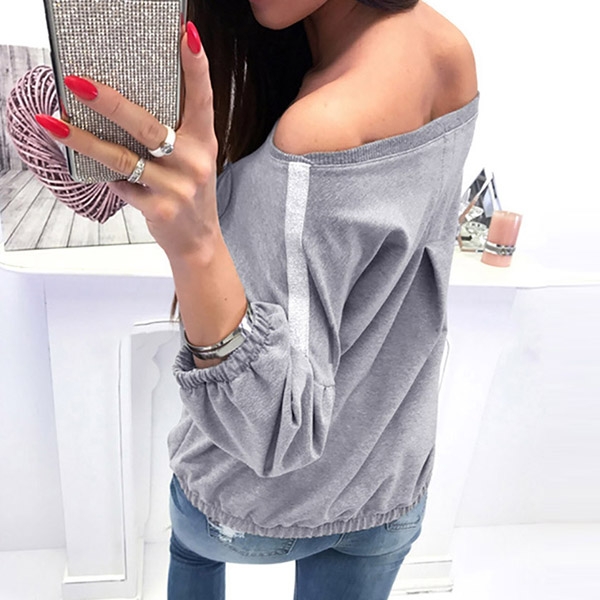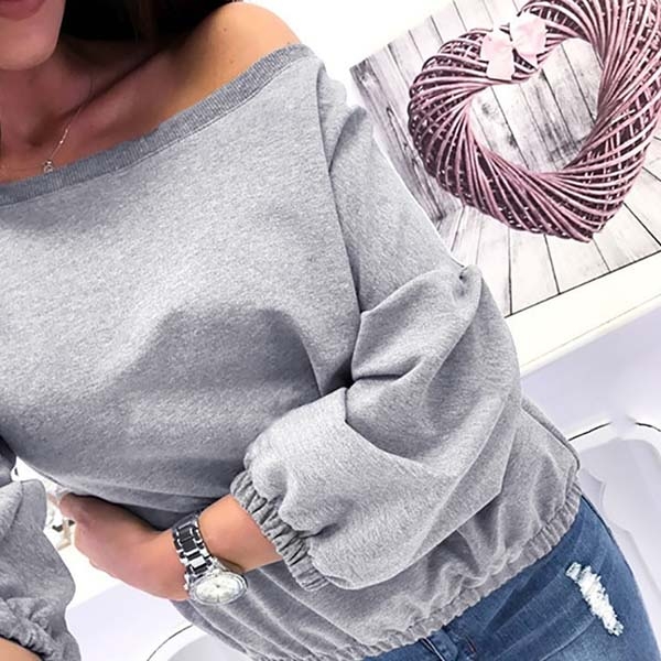 The oblique shoulder and puff sleeve design create this unique sweatshirt,while the soft and breathable