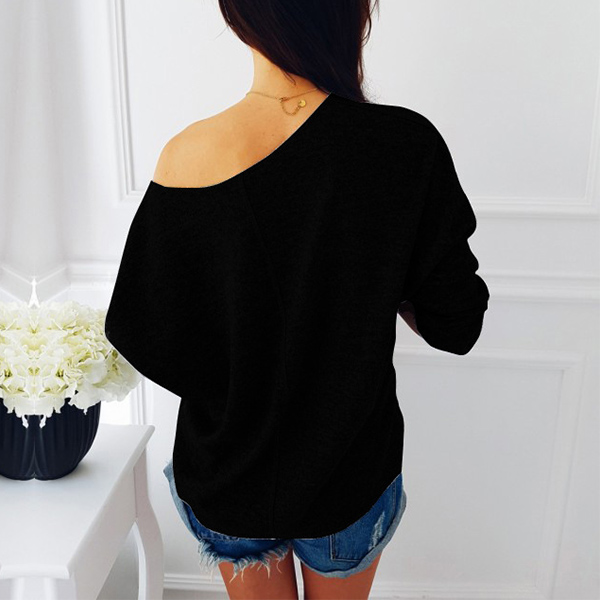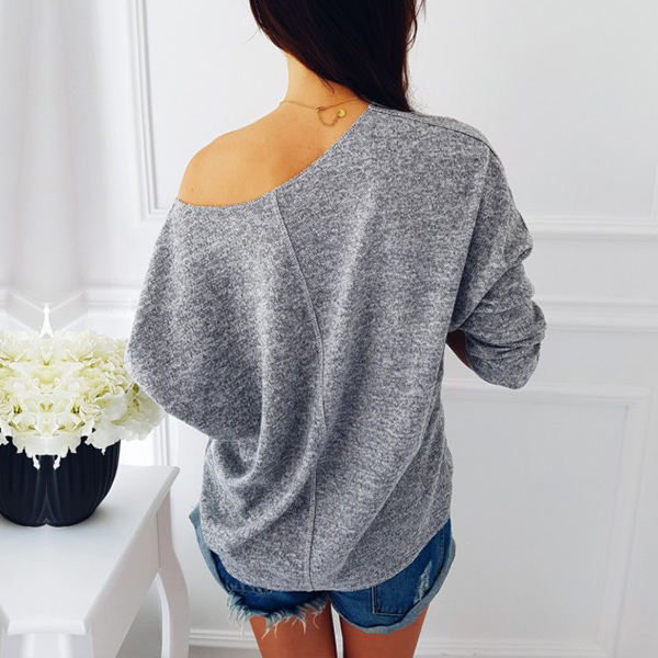 When you wanna a cozy yet feminine style,you can trust in this t-shirt. Its oblique shoulder and dolman sleeve design