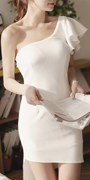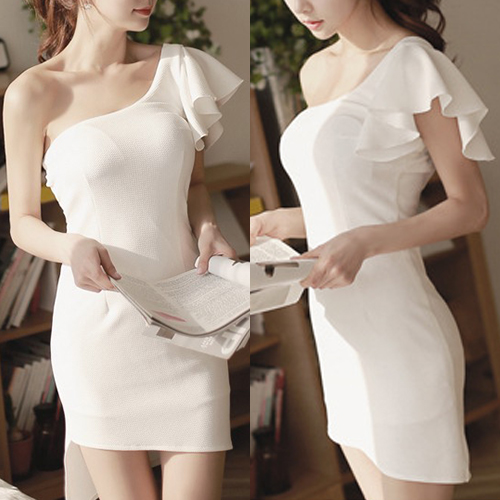 goddess if you have this dress on hand. Oblique shoulder style,its flouncing design makes it look