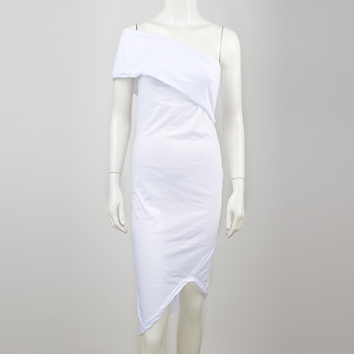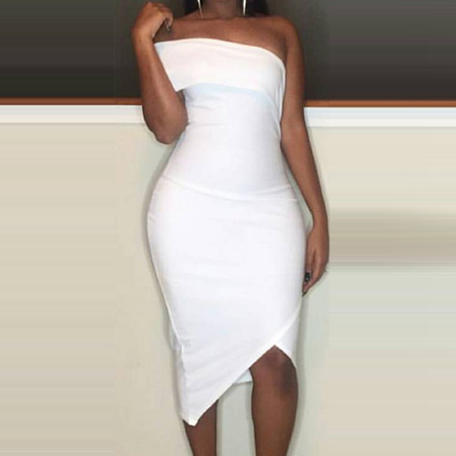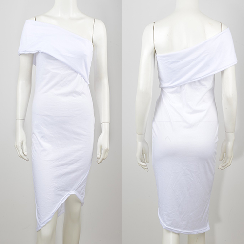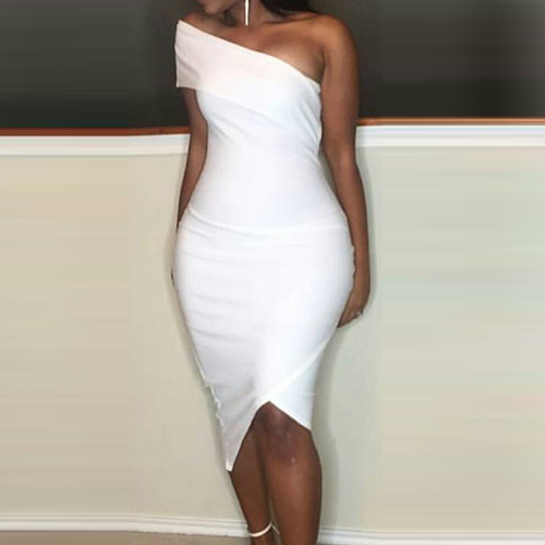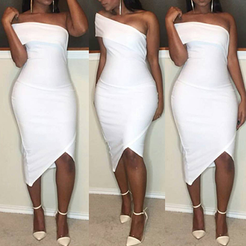 Undeniably sultry by way of this bodycon dress! Oblique shoulder style,with an irregular hem