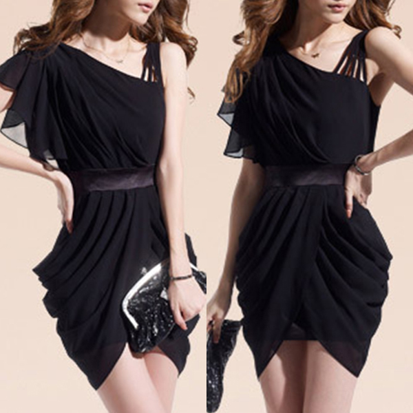 Oblique shoulder style,designed with an irregular hem and a fit silhouette,this dress is a good way to portray your