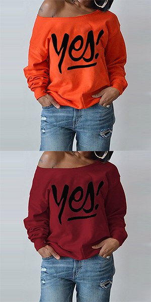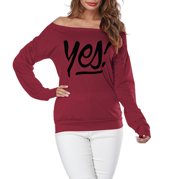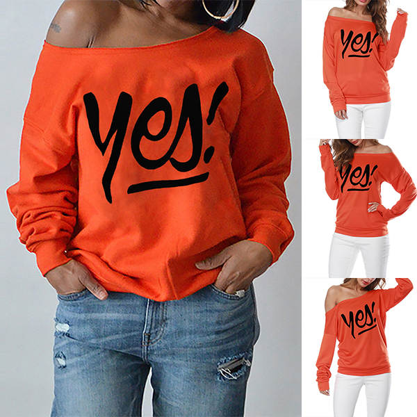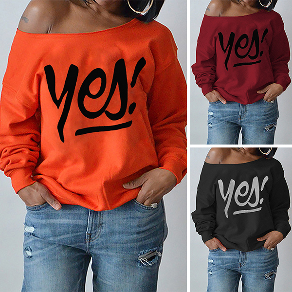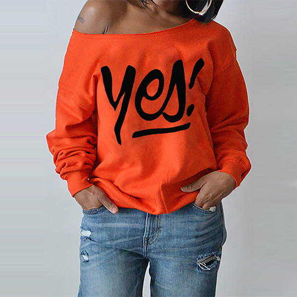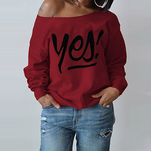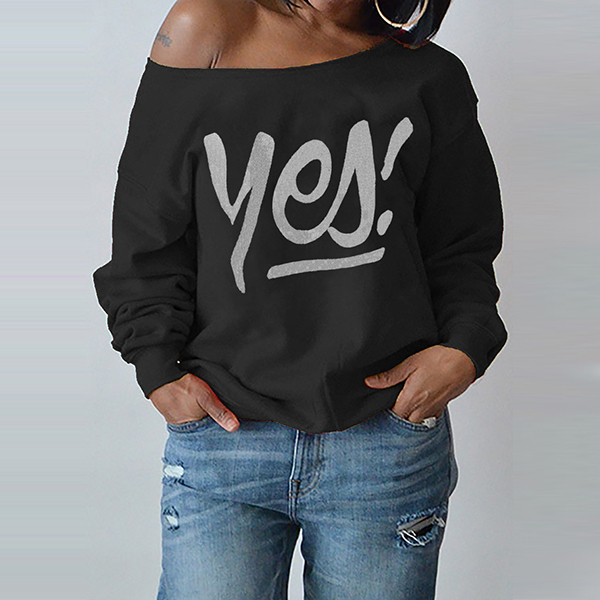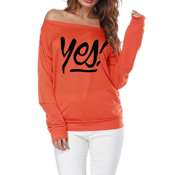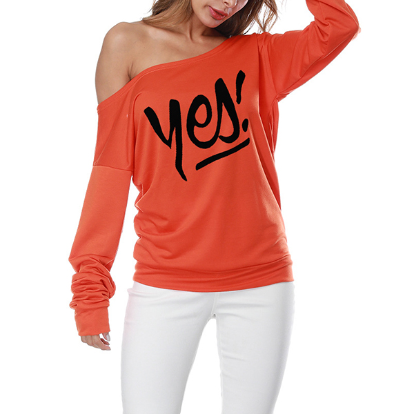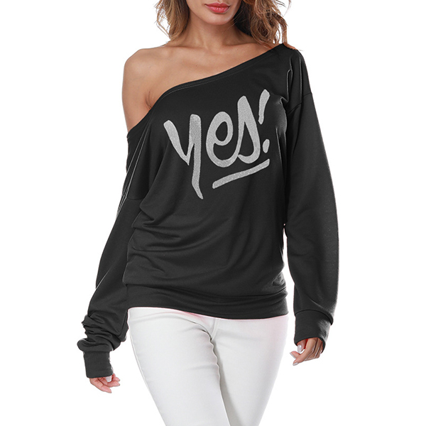 Sexy Oblique Shoulder Letters Printed Long Sleeve Sweatshirt