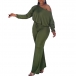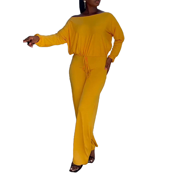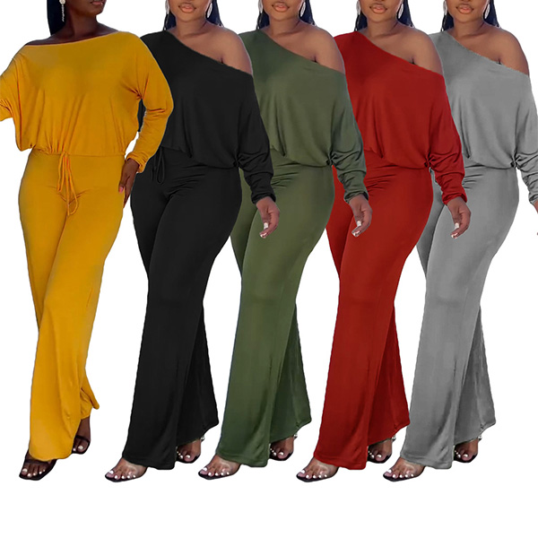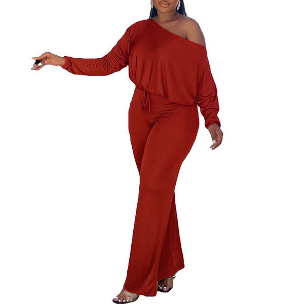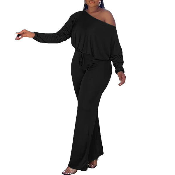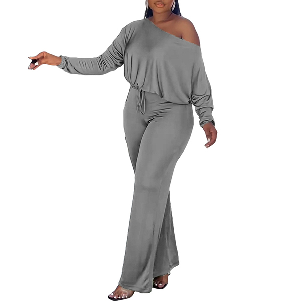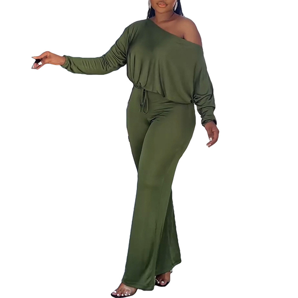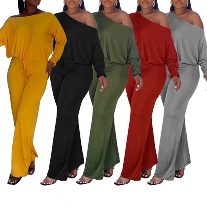Sexy Oblique Shoulder Long Sleeve Backless Solid Color Jumpsuit