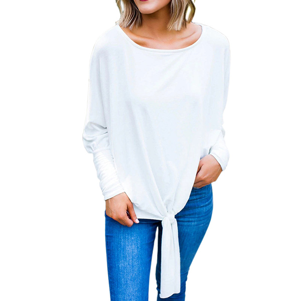 and knotted hem design will further enhance the charm of this t-shirt. Matching with your