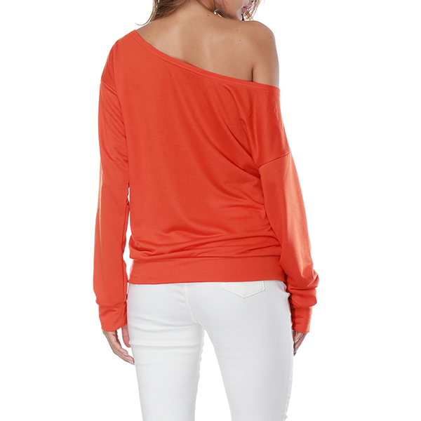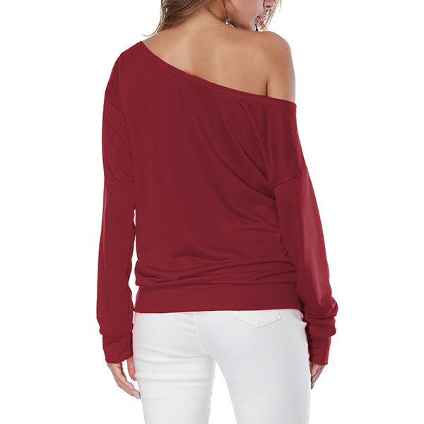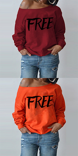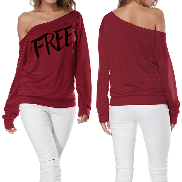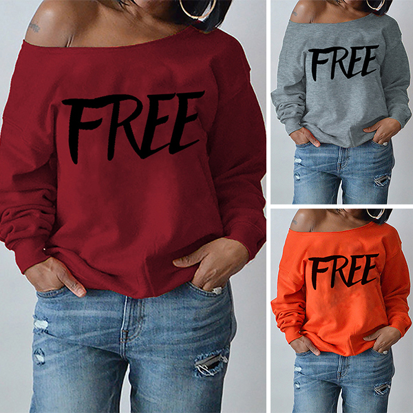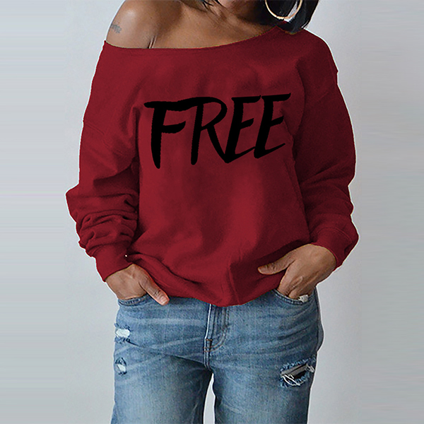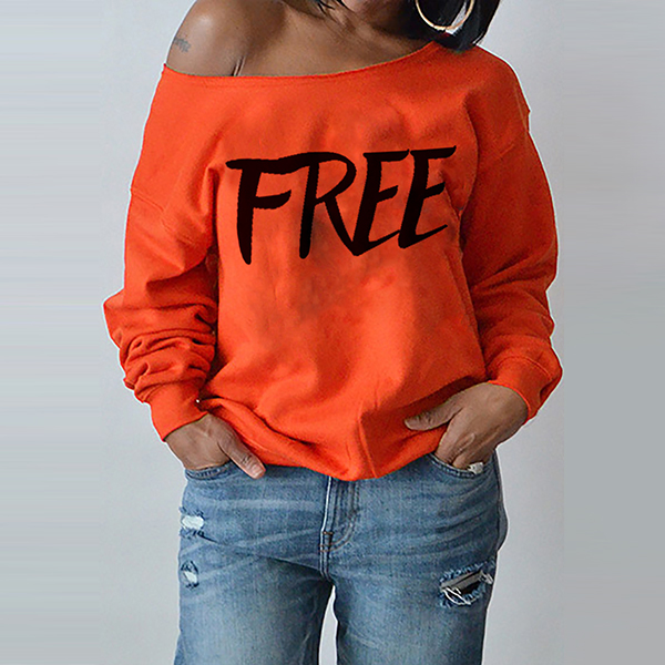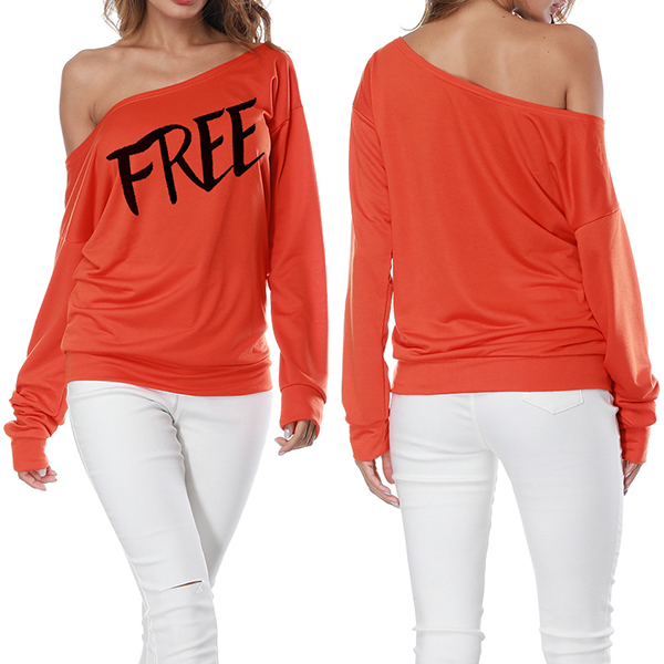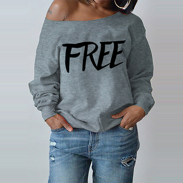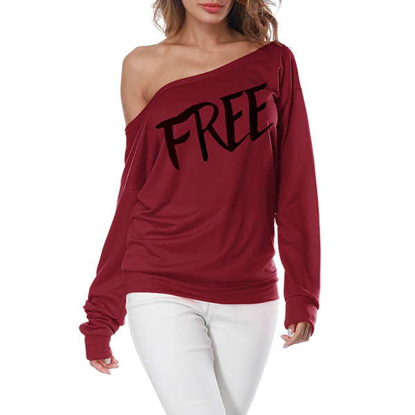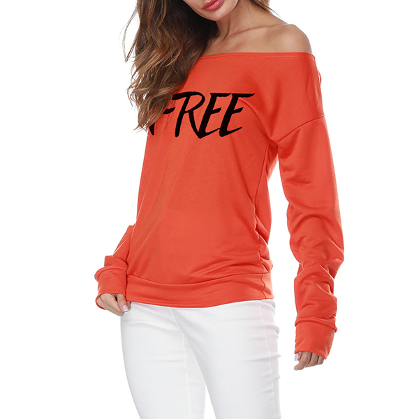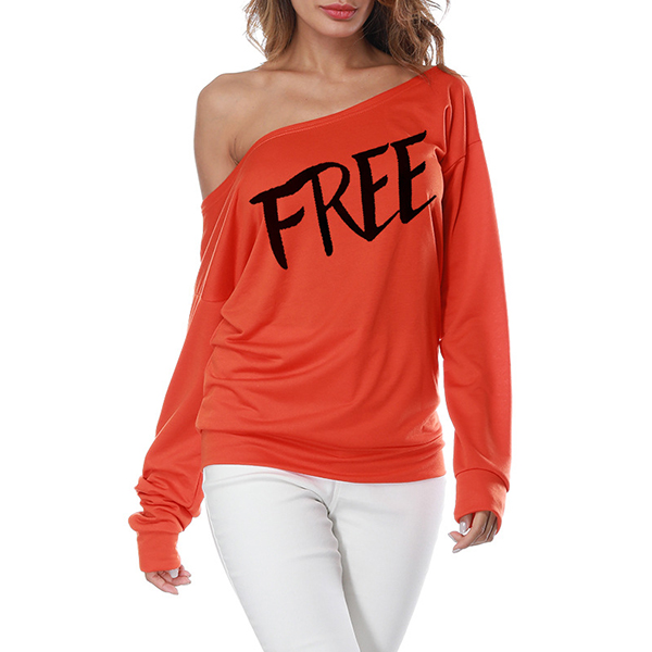 Sexy Oblique Shoulder Long Sleeve Letters Printed Loose Sweatshirt