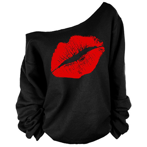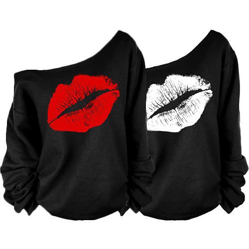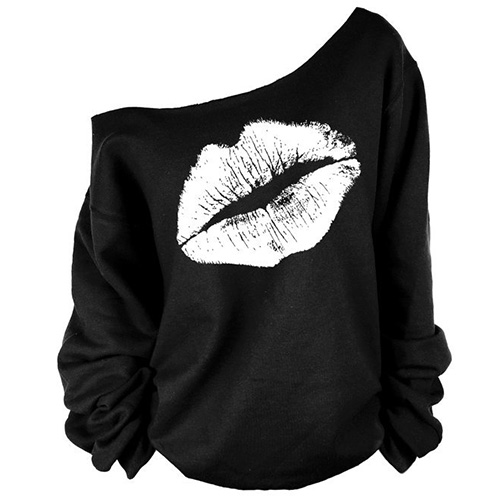 in these chilly mornings and nights. Oblique shoulder style,with lip printed pattern makes it