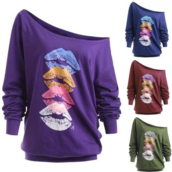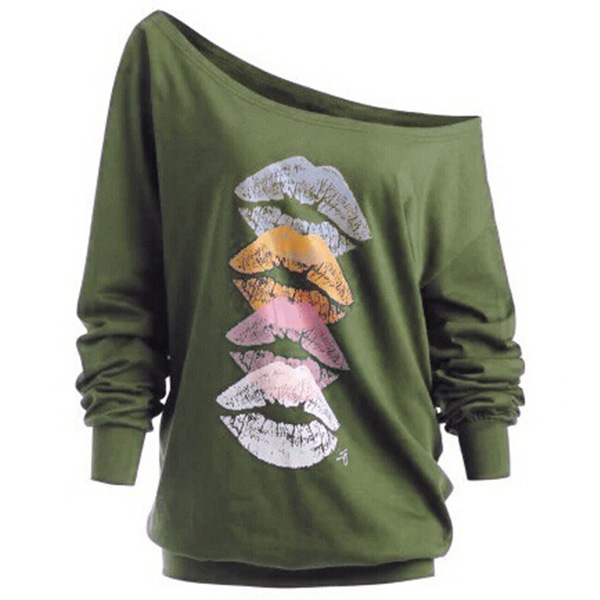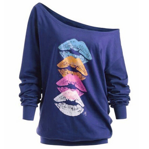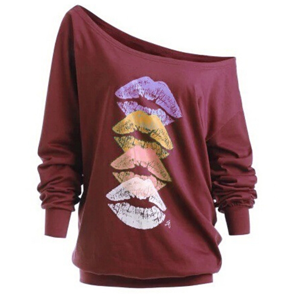 This sweatshirt is designed with lips printed pattern,playful and stylish. Moreover,the oblique shoulder