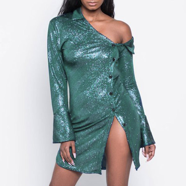 The oblique shoulder and side single-breasted design make this piece look so sexy and distinctive. Its chic printed