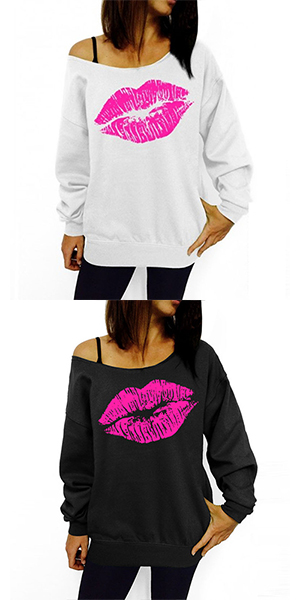 and its loose silhouette. Solid color style,with long sleeve,oblique shoulder and red lip